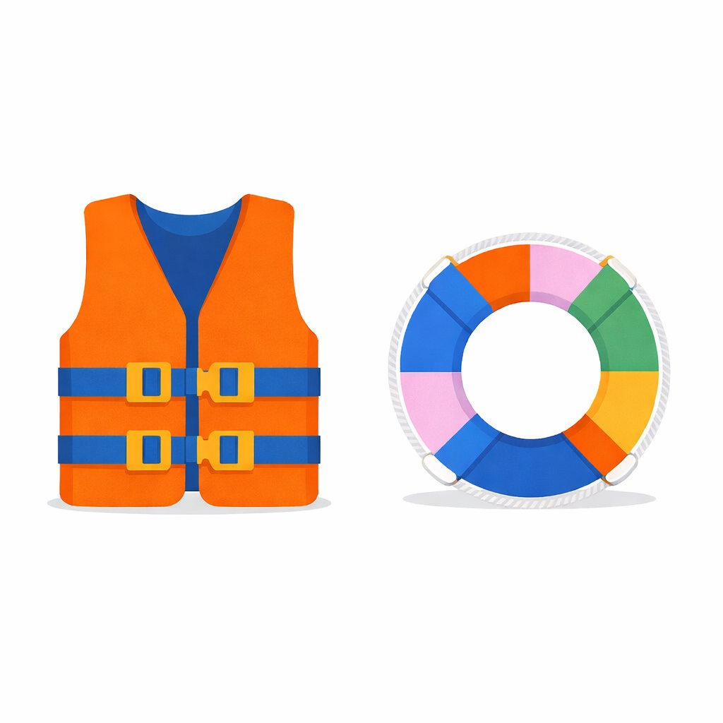 成人及兒童救生衣(符合海事處標準)、救生圈、拋繩、急救箱。